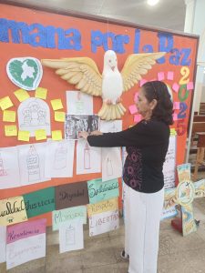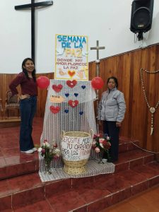Con el tema: construimos paz y hacemos realidad el sueño de Dios en nuestra comunidad, la esperanza creadora de paz, la comunidad provincial, ha celebrado del 01 al 6 de septiembre, la semana por la paz, en cada una de nuestras estructuras: parroquias, colegios y centros de evangelización, animados por el área de solidaridad y misión.