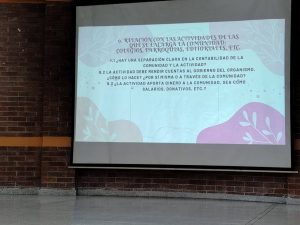En la tarde se dio apertura al taller formativo, criterios provinciales para la gestión de los recursos, animada por el padre Darío Carvajal, cmf Superior provincial y la charla sobre gestión financiera y administrativa en comunidades religiosas católicas en Ecuador: normativas, contabilidad y obligaciones legales, por la contadora Lady Medina.