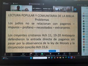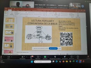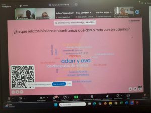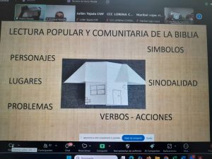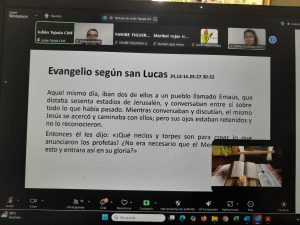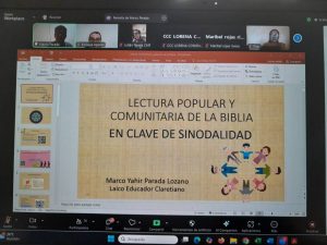 El tema formativo estuvo a cargo del máster Marco Parada, quien a través de la tecnología brindo herramientas y pautas para profundizar en el camino de la sinodalidad a la luz de la lectura popular y comunitaria de la Biblia.