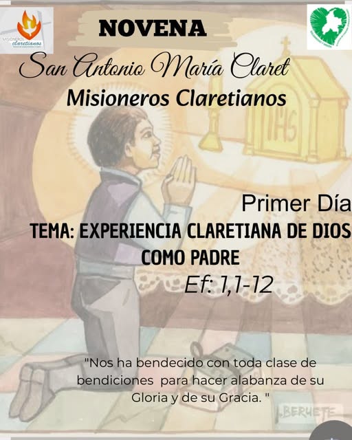 Considera los admirables ejemplos de virtud que desde su más tierna infancia da San Antonio María Claret. Nace en Sallent de unos padres cristianos, modestos tejedores, que se distinguían más por sus virtudes cristianas que por su fortuna. De ellos aprende el santo temor de Dios, la piedad y un espíritu de fe viva que le hace pensar con frecuencia en la eternidad y en la desgracia de los condenados. Distíngase por su modestia, por su obediencia y sobre todo por su inocencia, que él cultiva con una tierna devoción a la Santísima Virgen y a la divina Eucaristía. En medio de sus juegos infantiles sentía interiormente una voz que le llamaba; y obediente a ella, acudía al templo a los pies de la imagen de María o del sagrario. Así santificó su infancia y conservó intacta la inocencia bautismal.