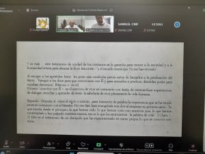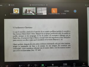 El 8 de noviembre del año en curso, se realizó el retiro virtual orientado por el P. Alfonso Reyes con el tema «Relaciones interpersonales y vida fraterna». Este espacio se desarrolló desde los siguientes bloques, a saber: la dimensión de la comunicación, la mirada crítica, el fundamento cristiano y claretiano, con espacios de exposición del P. Alfonso y con interpelaciones de los participantes. Agradecemos a los religiosos y laicos que participan y valoran estos espacios que ayudan a acentuar la espiritualidad y la vida comunitaria, de igual modo de compartir nuestro carisma con los laicos y brindarles herramientas para vivir su vocación a la vida y al servicio.